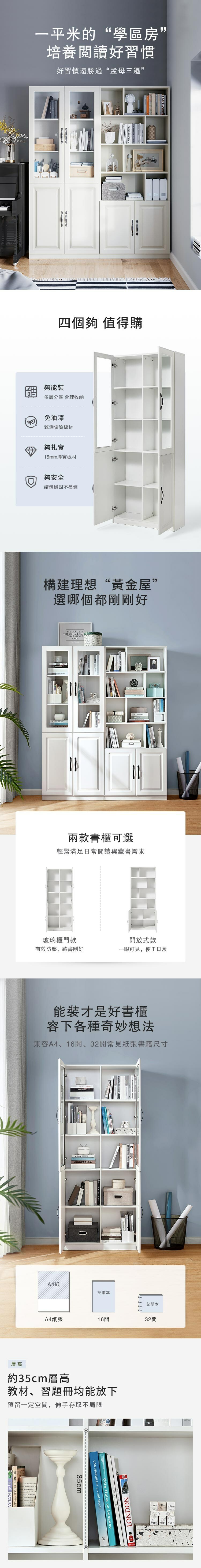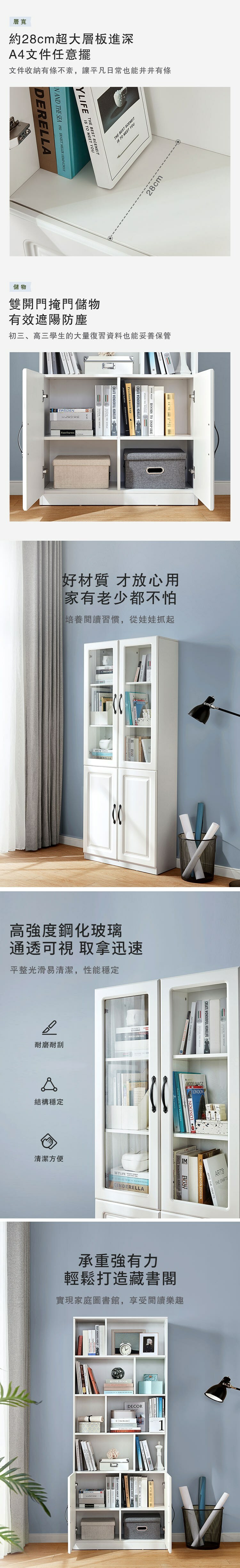 *注意:以下為情境示意圖,實際商品款式為北歐簡約純白玻璃書櫃 JO1X