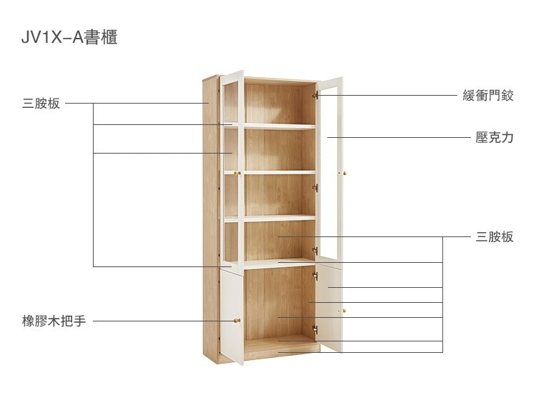 *注意:以下為情境示意圖,實際商品款式為北歐簡約玻璃四門書櫃 JV1X-原木+白色