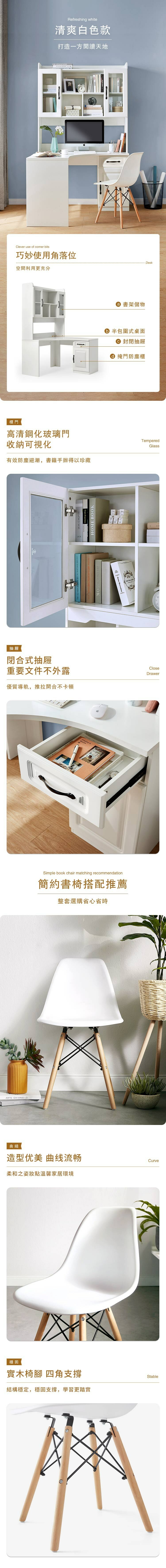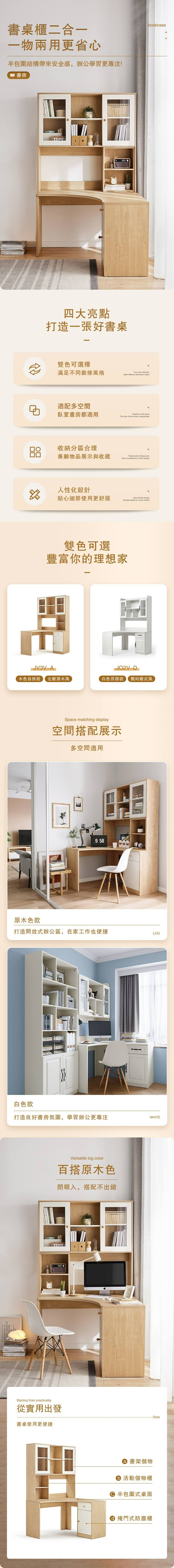 *注意:以下為情境示意圖,實際商品款式為北歐簡約附書架轉角書桌 JV3V-原木+白色