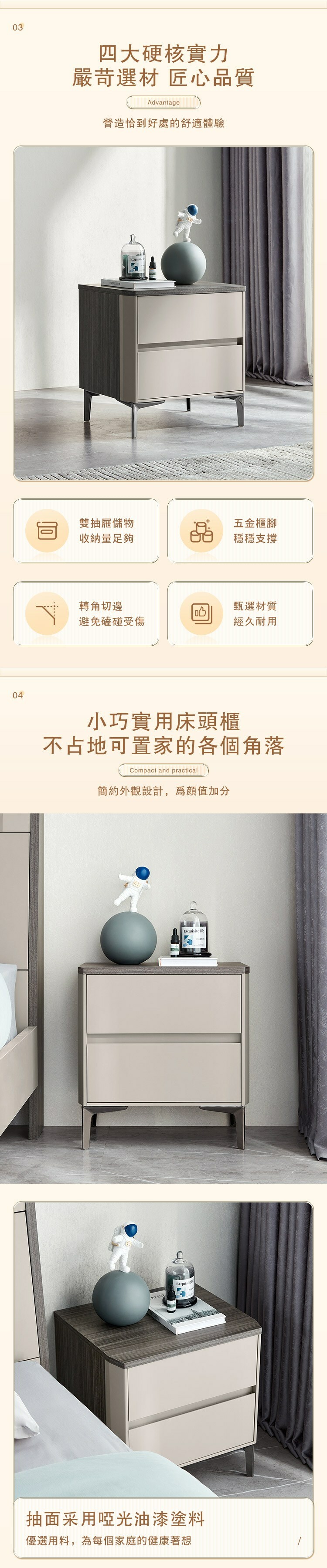 *注意:以下為情境示意圖,實際商品款式為現代簡約灰木色雙抽床頭櫃 KC1B