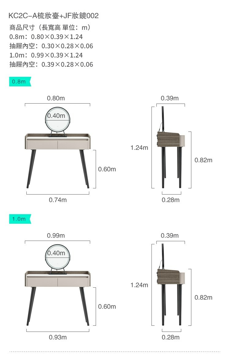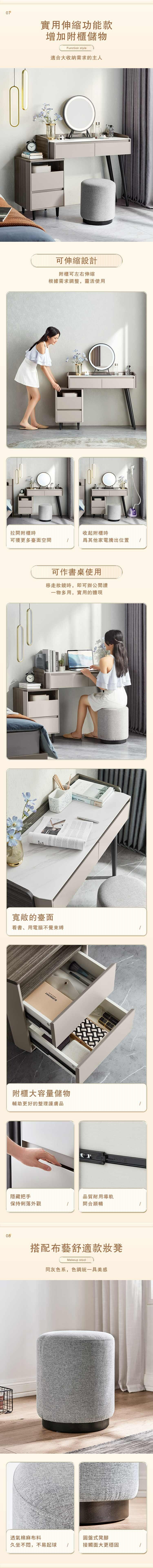 *注意:以下為情境示意圖,實際商品款式為現代簡約灰木色0.8M雙抽化妝桌 KC2C