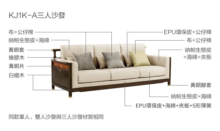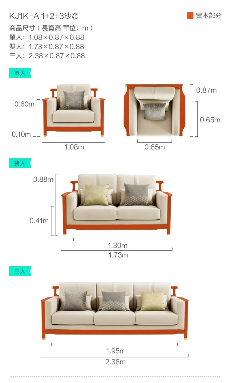 *注意:以下為情境示意圖,實際商品款式為新中式實木舒適雙人沙發 KJ1K-米白色