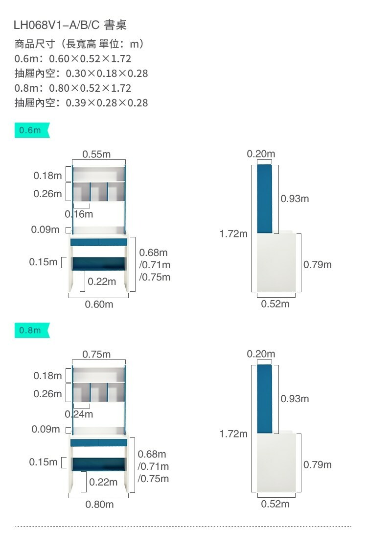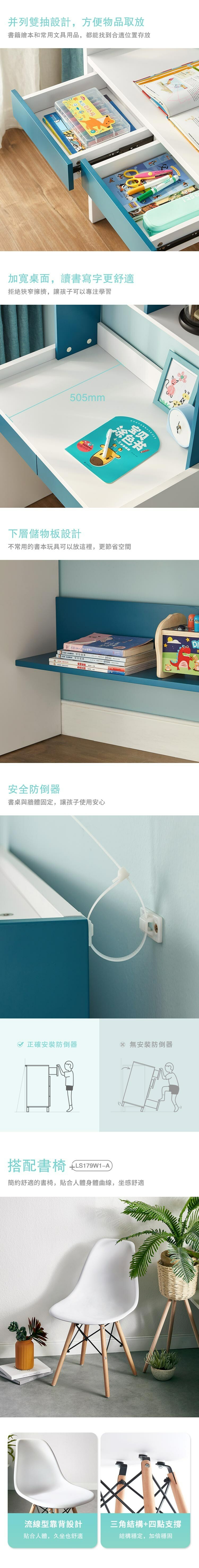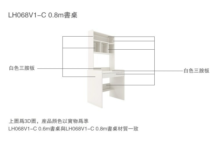 *注意:以下為情境示意圖,實際商品款式為夢想兒童0.8M附書架學習書桌 LH068-白色