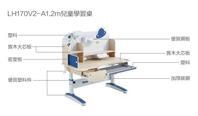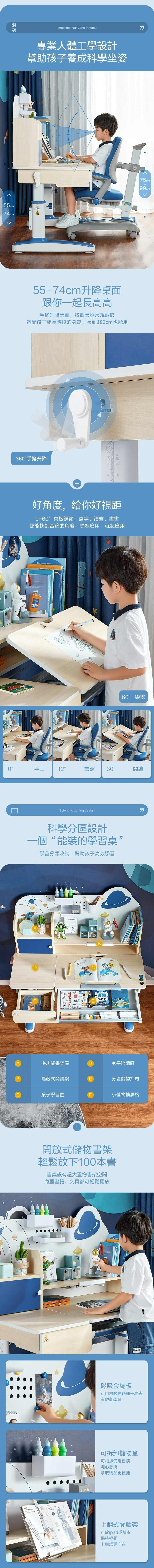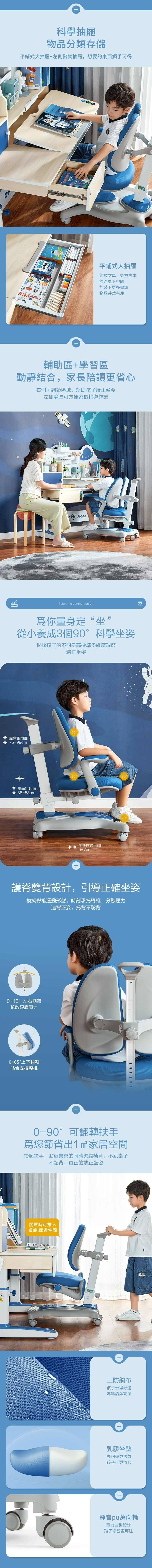 *注意:以下為情境示意圖,實際商品款式為夢想探索1.2M可升降學習桌 LH170+學習椅 LH006W2-藍色