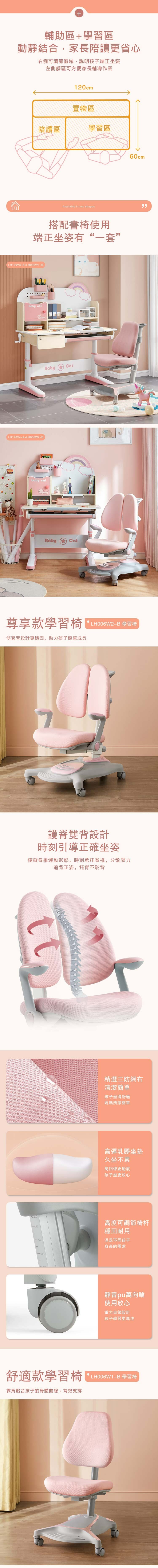 *注意:以下為情境示意圖,實際商品款式為夢想探索1.2M可升降學習桌 LH170+學習椅 LH006W2-粉色