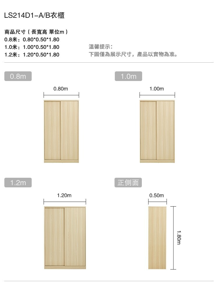 *注意:以下為情境示意圖,實際商品款式為北歐簡約小戶型1M衣櫃 LS214-原木色 (附頂櫃)