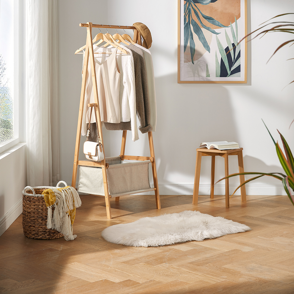 *注意:以下為情境示意圖,實際商品款式為北歐經典布袋收納衣帽架 LS706-原木色