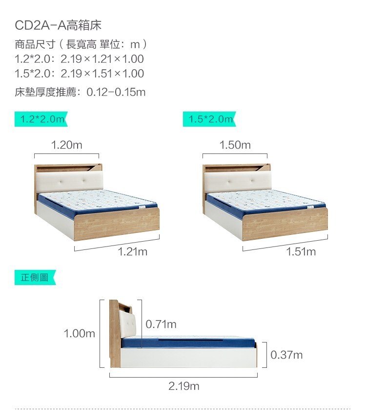 *注意:以下為情境示意圖,實際商品款式為北歐多功能單人加大4尺120x200收納床架 CD2A-原木色,適用床墊尺寸 : 寬 120 X 長 200 CM