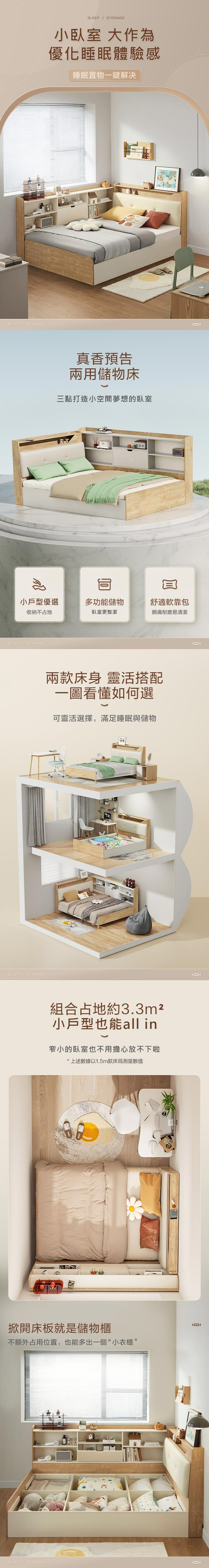 *注意:以下為情境示意圖,實際商品款式為北歐多功能單人加大4尺120x200收納床架CD2A-原木色(附收納櫃),適用床墊尺寸 : 寬 120 X 長 200 CM