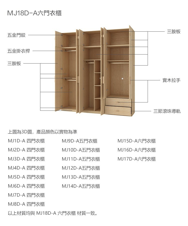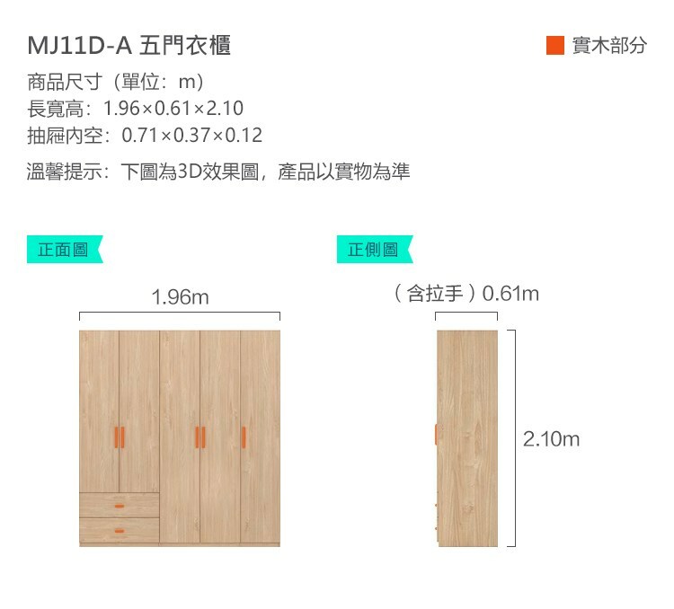 *注意:以下為情境示意圖,實際商品款式為北歐簡約五門雙抽衣櫃 MJ11D-原木色