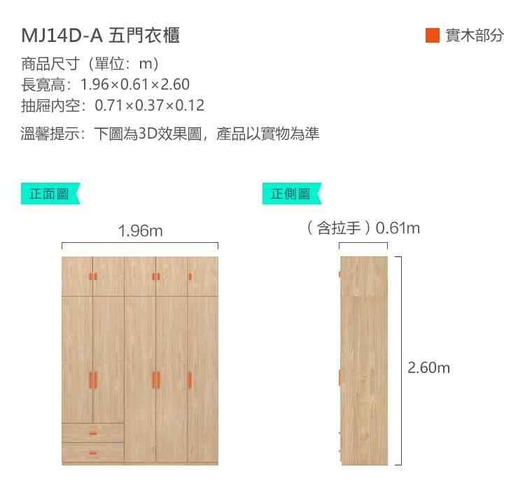*注意:以下為情境示意圖,實際商品款式為北歐簡約五門雙抽衣櫃 MJ14D-原木色 (附頂櫃)