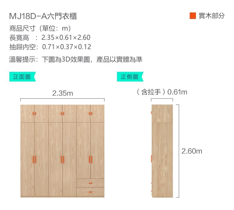 *注意:以下為情境示意圖,實際商品款式為北歐簡約六門雙抽衣櫃 MJ18D-原木色 (附頂櫃)