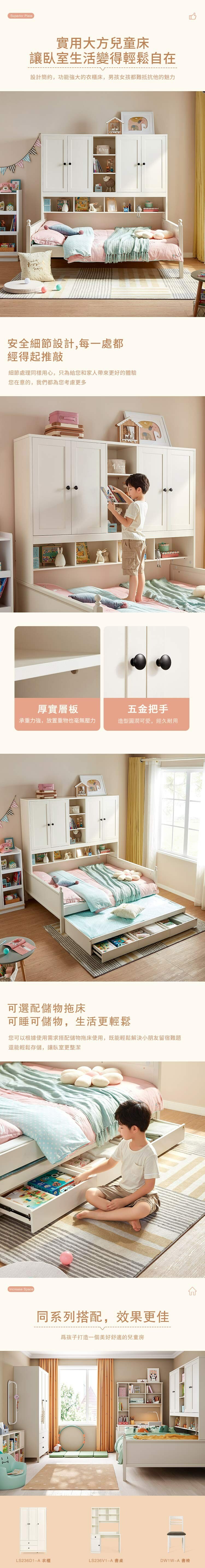 *注意:以下為情境示意圖,實際商品款式為北歐儲物櫃小戶型兒童床135x190 LS236,適用床墊尺寸 : 寬 135 X 長 190 CM
