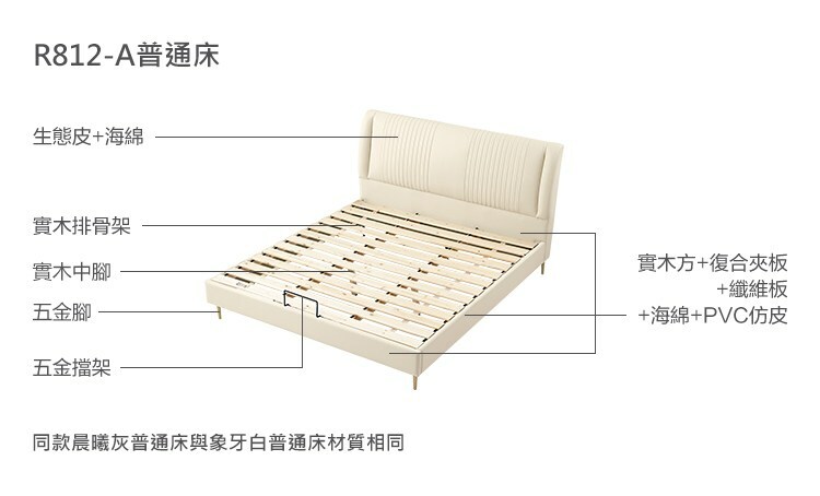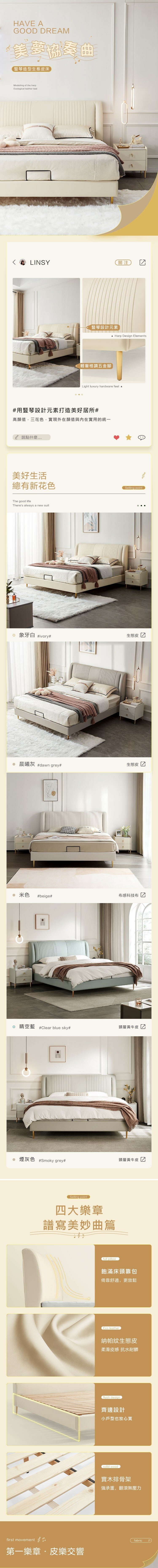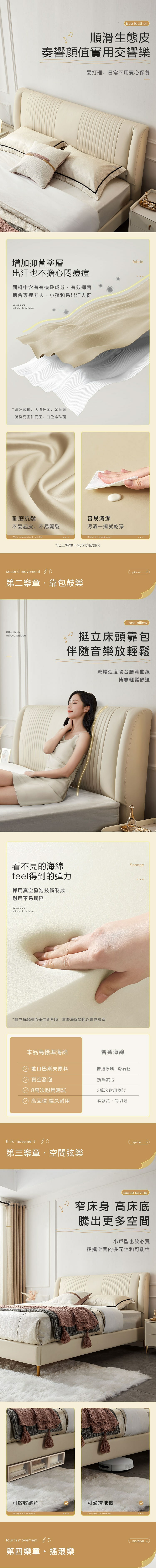 *注意:以下為情境示意圖,實際商品款式為輕奢豎琴造型生態皮雙人150x200床架 R812-象牙白