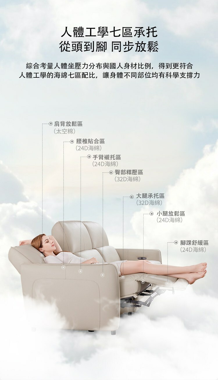 電動馬達保固6年,坐墊海綿保固5年,合金鋼架保固5年,沙發框架保固10年