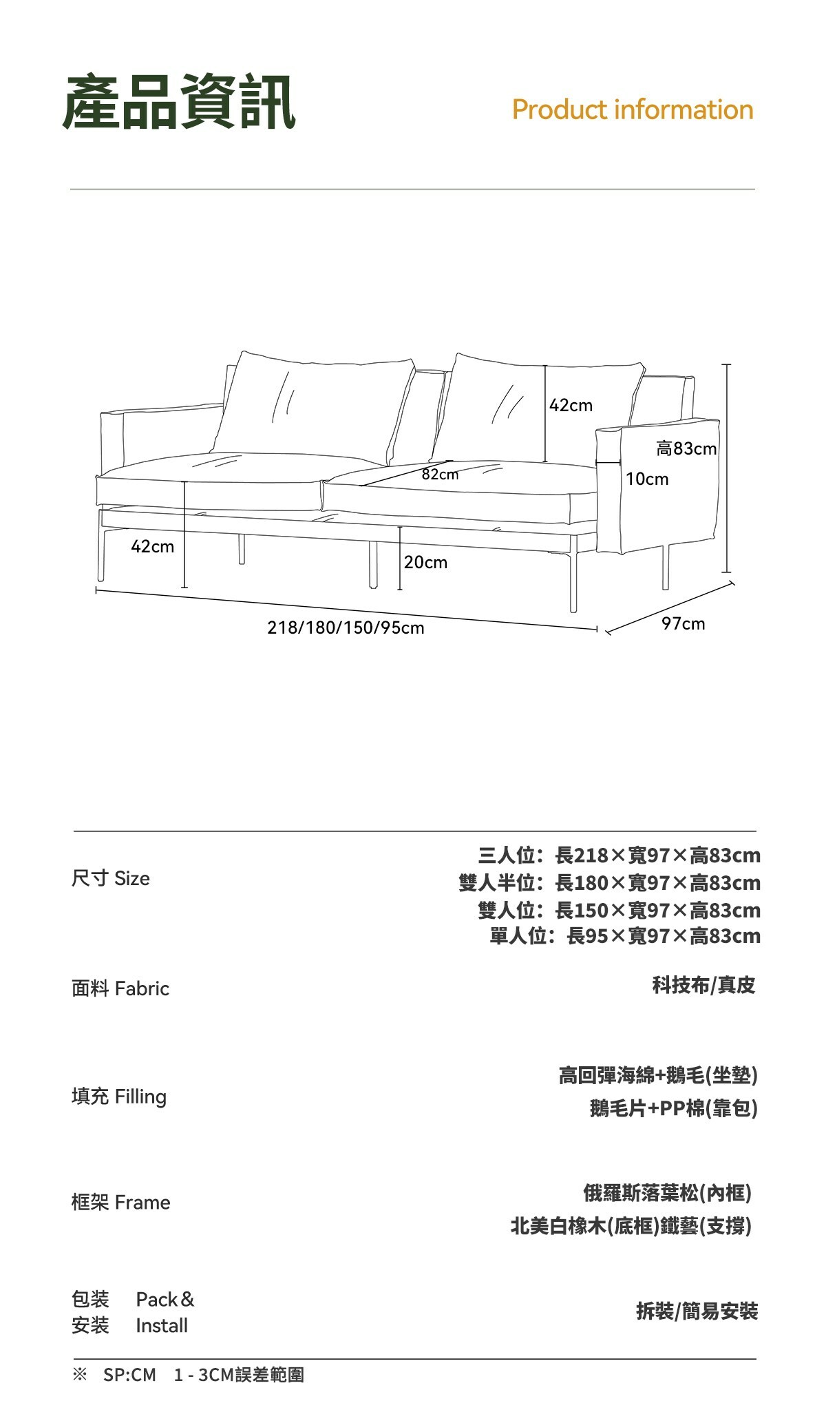實心金屬沙發腿,穩定不搖晃