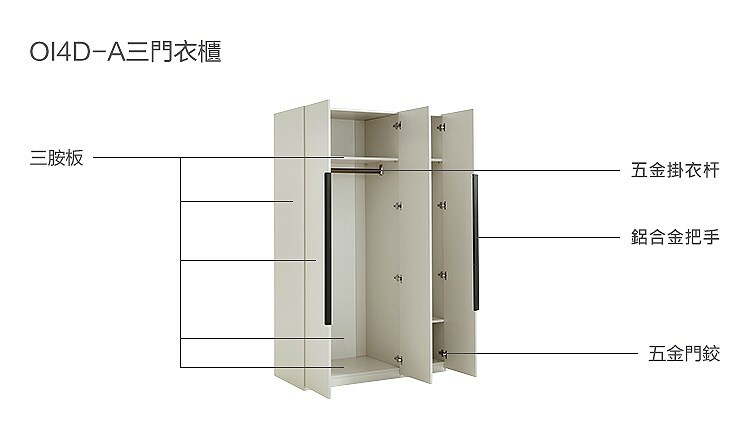 *注意:以下為情境示意圖,實際商品款式為魔方系列1.63M三門衣櫃組合 OI4D-灰粉色