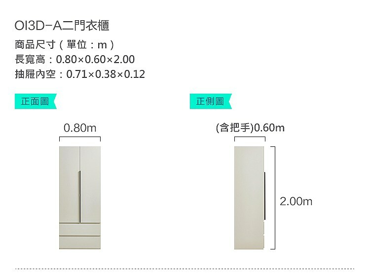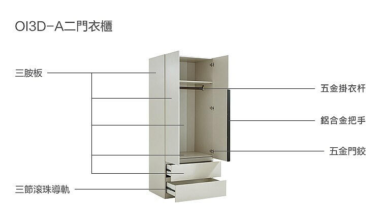 *注意:以下為情境示意圖,實際商品款式為魔方系列雙門雙抽衣櫃 OI3D