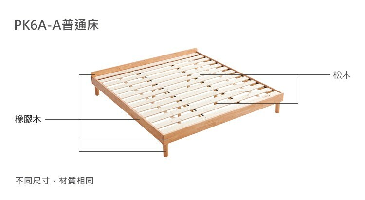 *注意:以下為情境示意圖,實際商品款式為北歐原木色實木雙人加大180x200床架 PK6A
