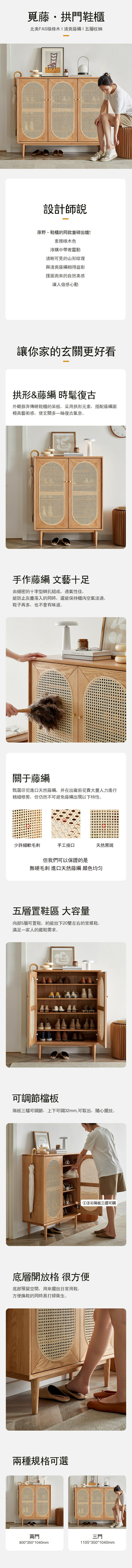 *注意:以下為情境示意圖,實際商品款式為源氏木語覓藤拱門藤編橡木實木1.1M三門鞋櫃