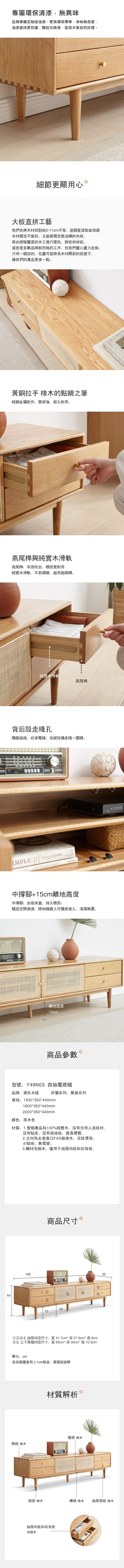 *注意:以下為情境示意圖,實際商品款式為源氏木語覓藤橡木實木四抽雙門2M電視櫃