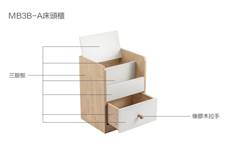 *注意:以下為情境示意圖,實際商品款式為北歐簡約小戶型單抽床頭櫃 MB3B-原木+白色