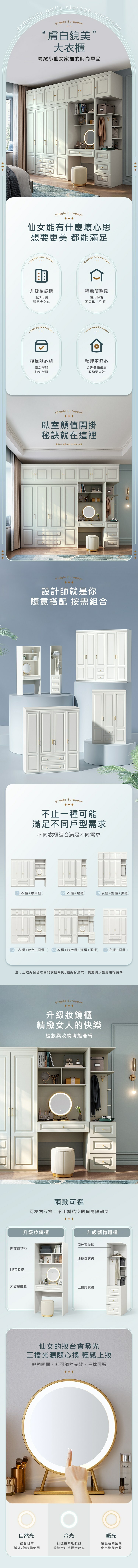 *注意:以下為情境示意圖,實際商品款式為北歐簡約純白金色把手四門衣櫃 JO11D (附化妝邊櫃及頂櫃)