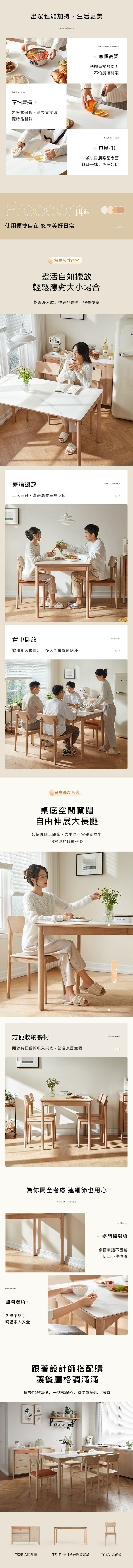 *注意:以下為情境示意圖,實際商品款式為日出印象實木岩板1.6M餐桌 TS1R+實木餐椅 TS1S (一桌四椅)