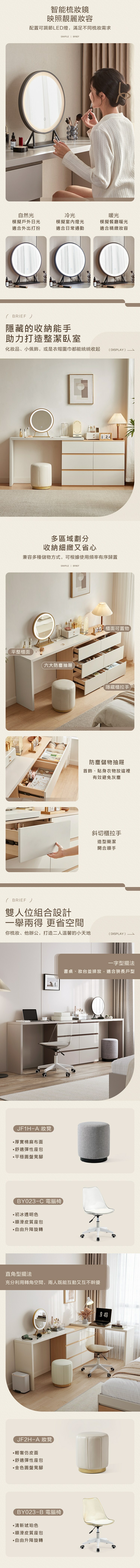 *注意:以下為情境示意圖,實際商品款式為簡約雙色抽屜櫃附鏡可伸縮化妝桌組 OV2C-原木色 (附妝凳 JF1H)