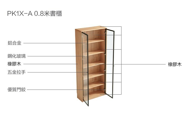 *注意:以下為情境示意圖,實際商品款式為自然物語若谷實木0.8M玻璃雙門書櫃 PK1X