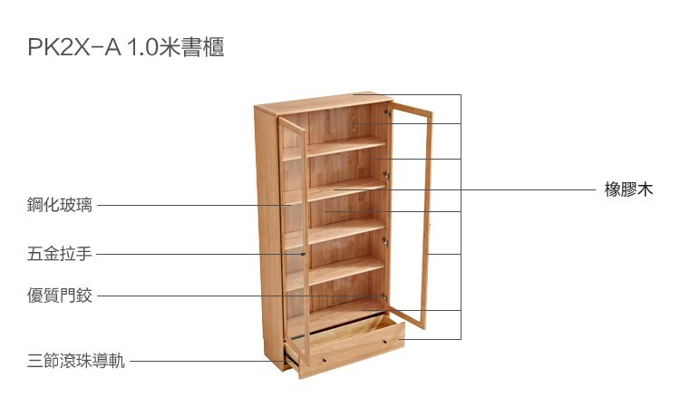 *注意:以下為情境示意圖,實際商品款式為自然物語若谷實木1M玻璃雙門單抽書櫃 PK2X