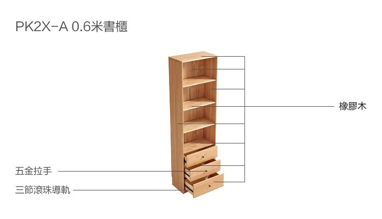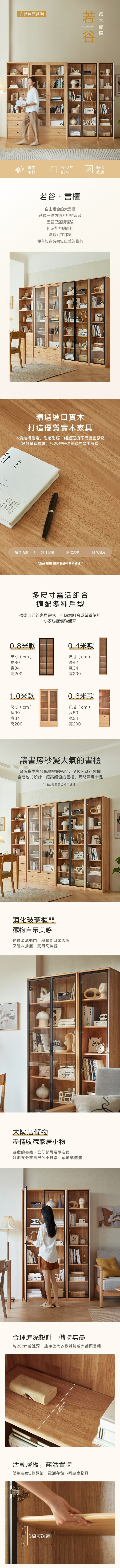 *注意:以下為情境示意圖,實際商品款式為自然物語若谷實木0.6M開放式多功能書櫃 PK2X