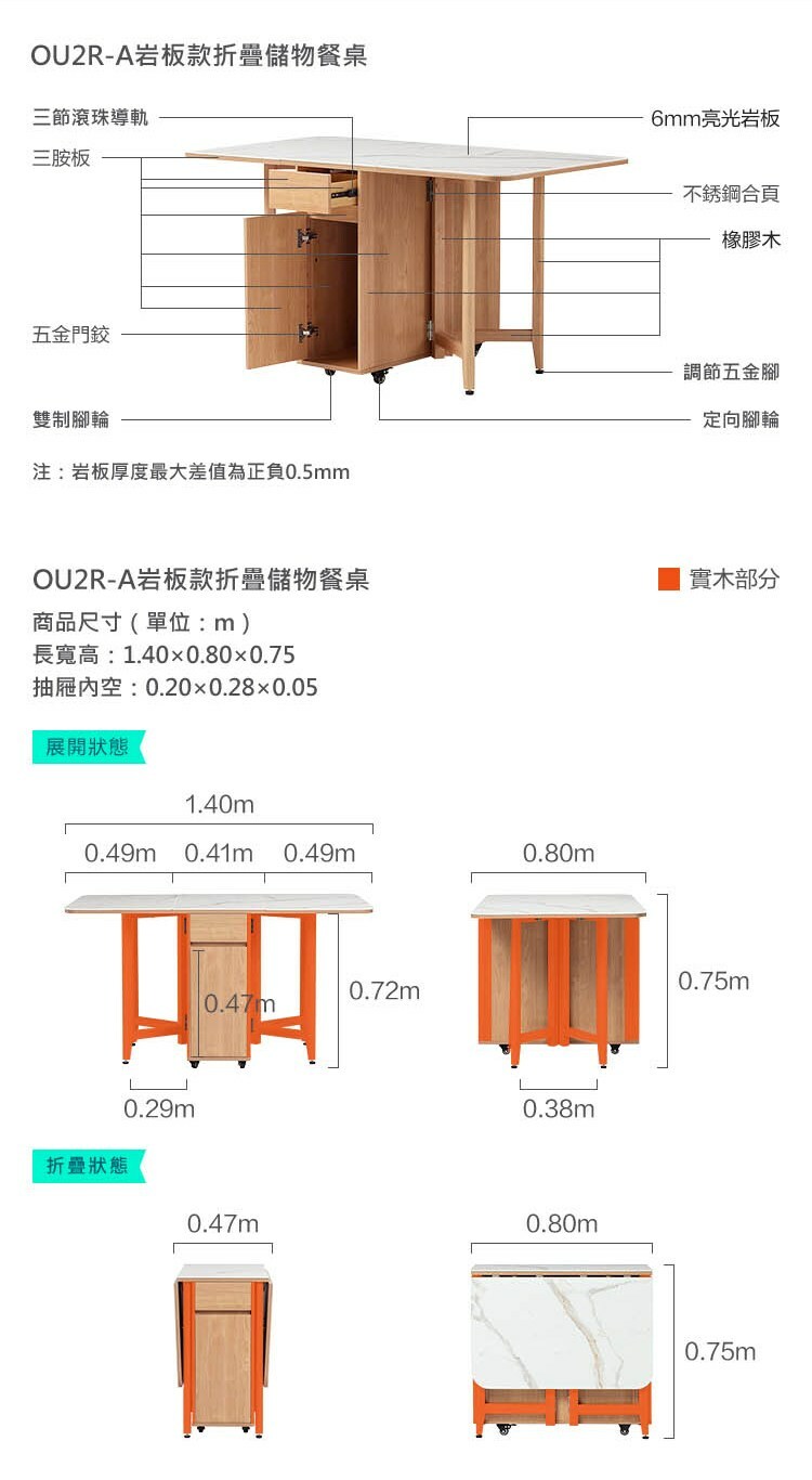 *注意:以下為情境示意圖,實際商品款式為北歐原木風靈動岩板摺疊餐桌 OU2R+摺疊餐椅 OU1S (一桌四椅)
