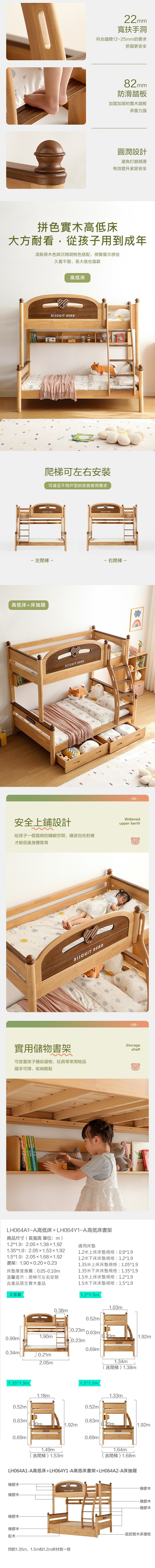 *注意:以下為情境示意圖,實際商品款式為原木風實木雙人150x190雙層兒童床架 LH064 (附書架)
