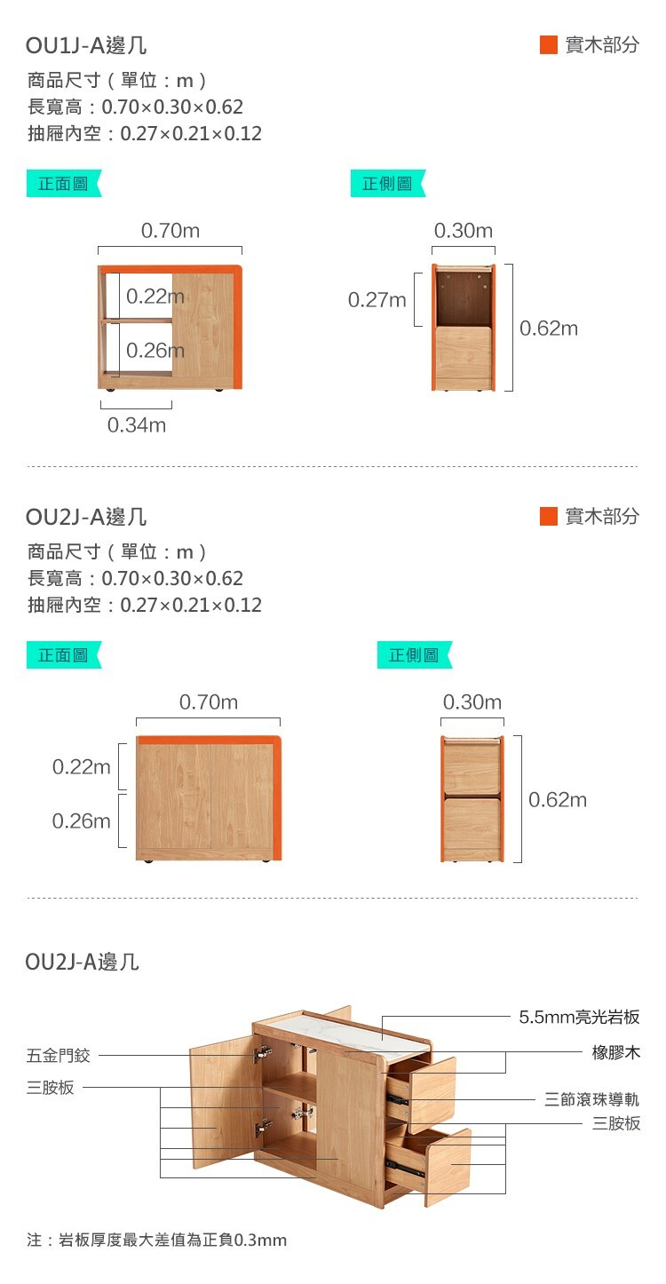 *注意:以下為情境示意圖,實際商品款式為北歐原木風角落雙抽屜可移動岩板邊几 OU1J