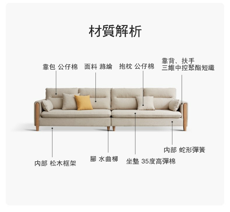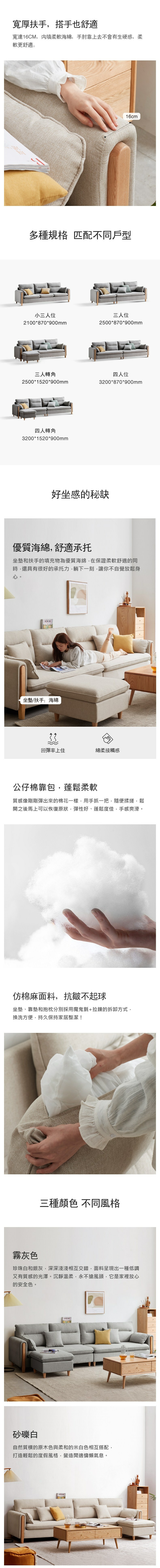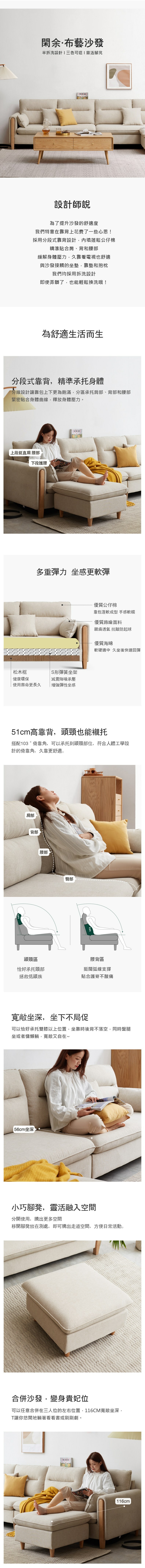 *注意:以下為情境示意圖,實際商品款式為閑余實木框三人布沙發含抱枕+腳凳 Y00H19 砂礫白