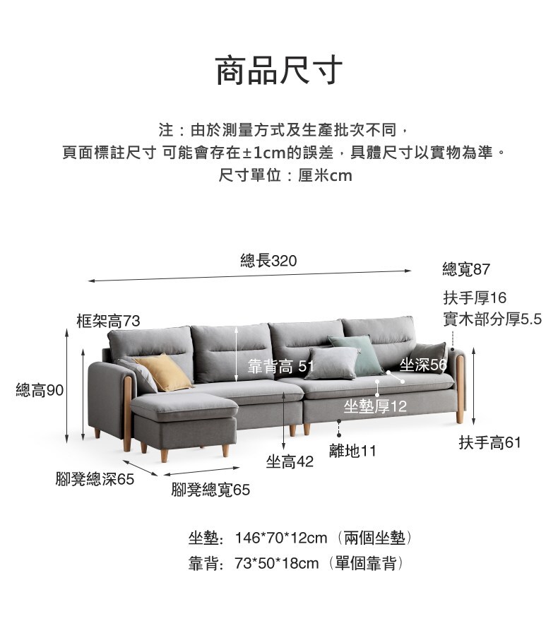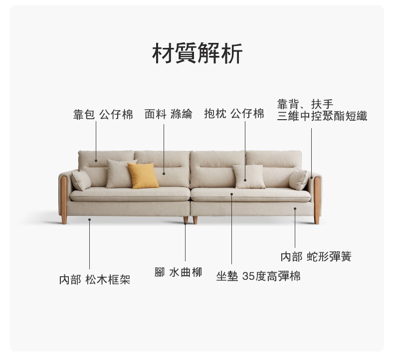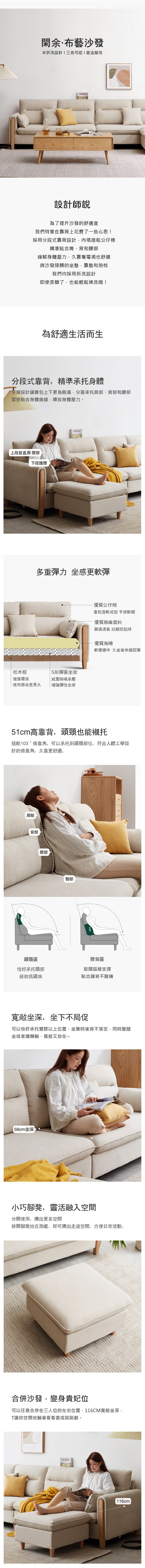 *注意:以下為情境示意圖,實際商品款式為閑余實木框四人布沙發含抱枕 Y00H19 霧灰