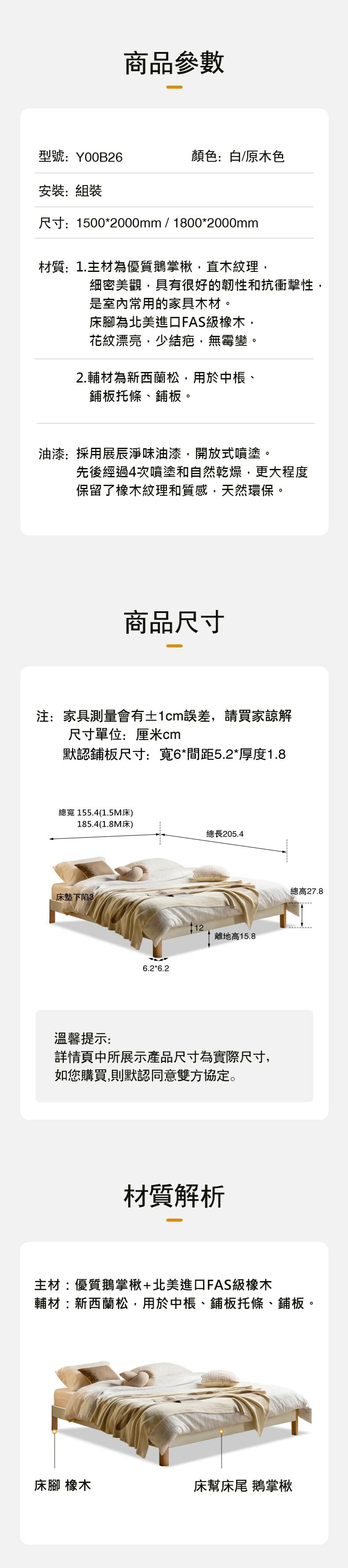 *注意:以下為情境示意圖,實際商品款式為奶油風實木雙人加大180x200床架 Y00B26
