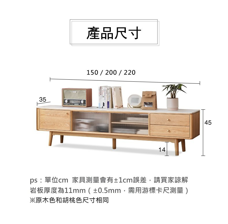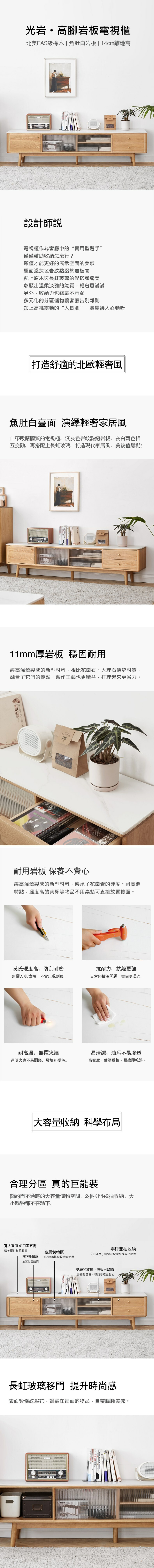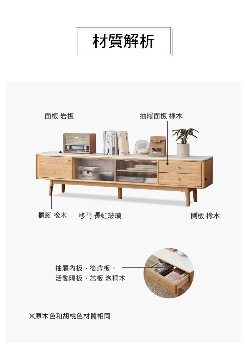 *注意:以下為情境示意圖,實際商品款式為光岩橡木原木色岩板雙抽2M電視櫃 Y150N01