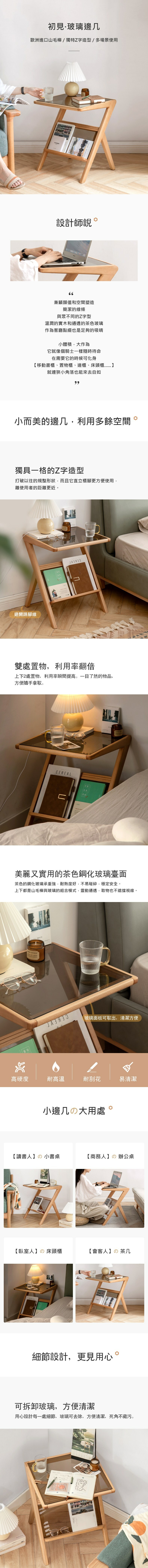 *注意:以下為情境示意圖,實際商品款式為初見山毛櫸原木色玻璃邊几 Y107J02
