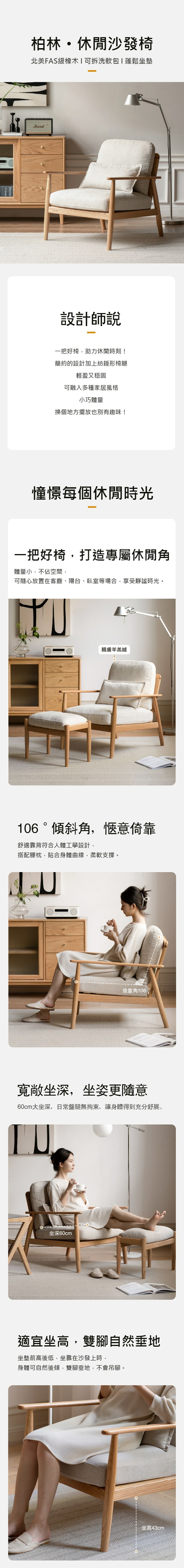 *注意:以下為情境示意圖,實際商品款式為柏林橡木原木色單人沙發椅 Y83H04 米白色
