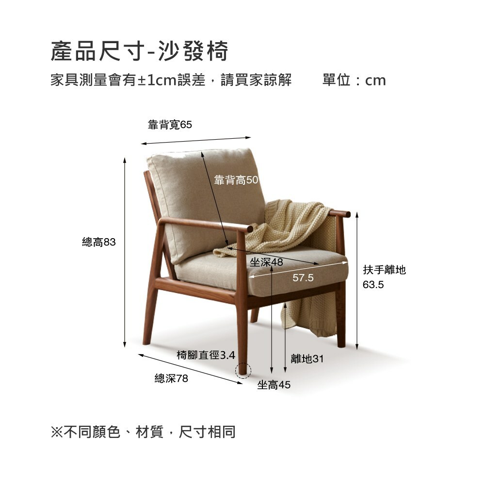 *注意:以下為情境示意圖,實際商品款式為莫奈黑胡桃木單人牛皮沙發椅 K196H01 卡其色