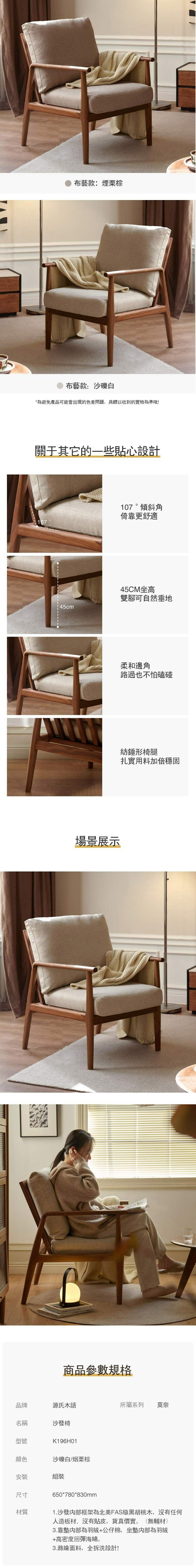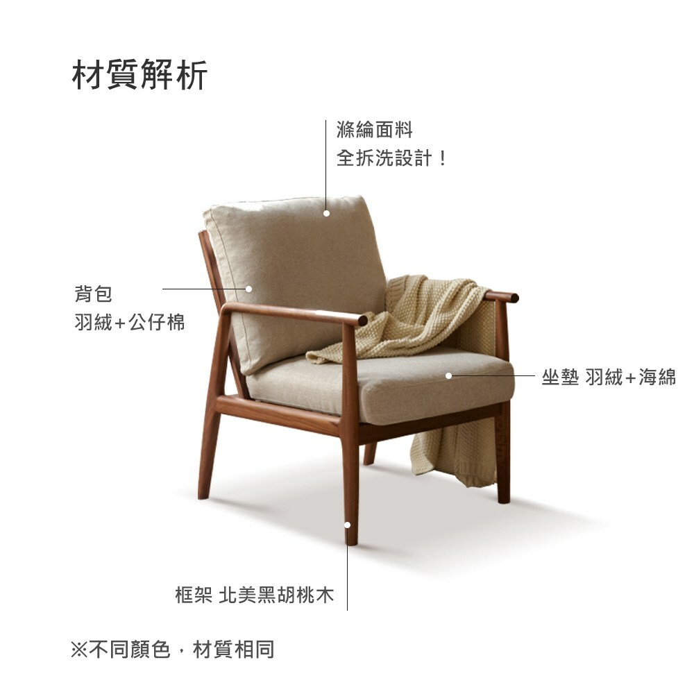 *注意:以下為情境示意圖,實際商品款式為莫奈黑胡桃木單人布沙發椅 K196H01 煙栗棕
