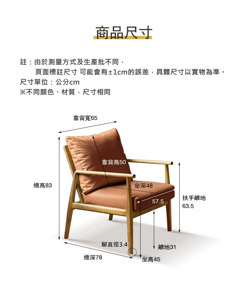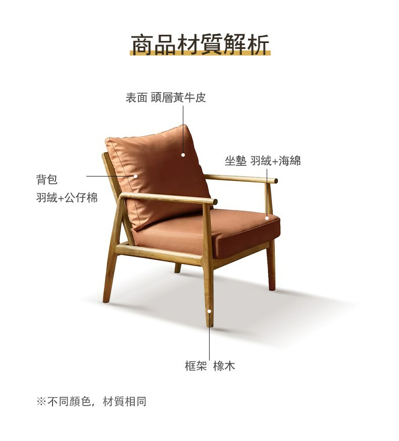 *注意:以下為情境示意圖,實際商品款式為布拉格橡木原木色單人牛皮沙發椅 Y84H09 棕黃色