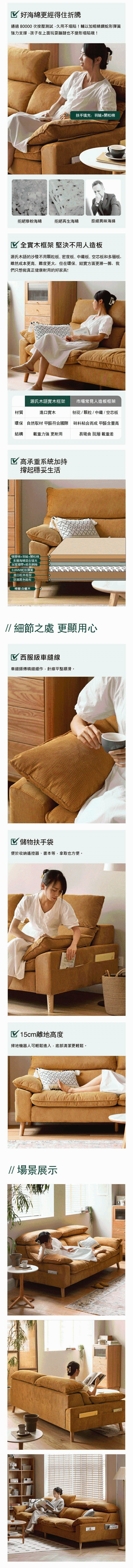 *注意:以下為情境示意圖,實際商品款式為暖陽可調頭枕復古燈心絨四人座沙發 S03124 薑黃色