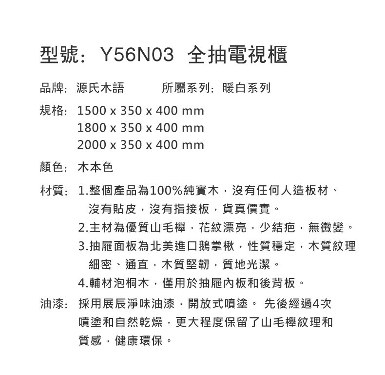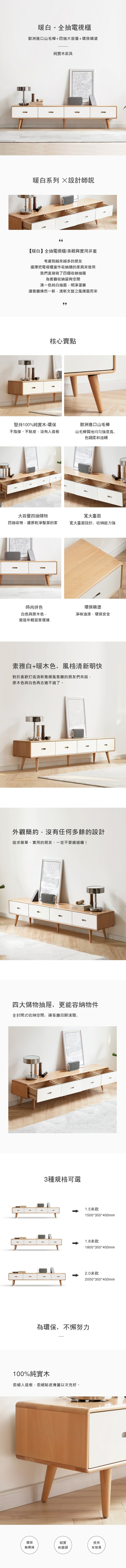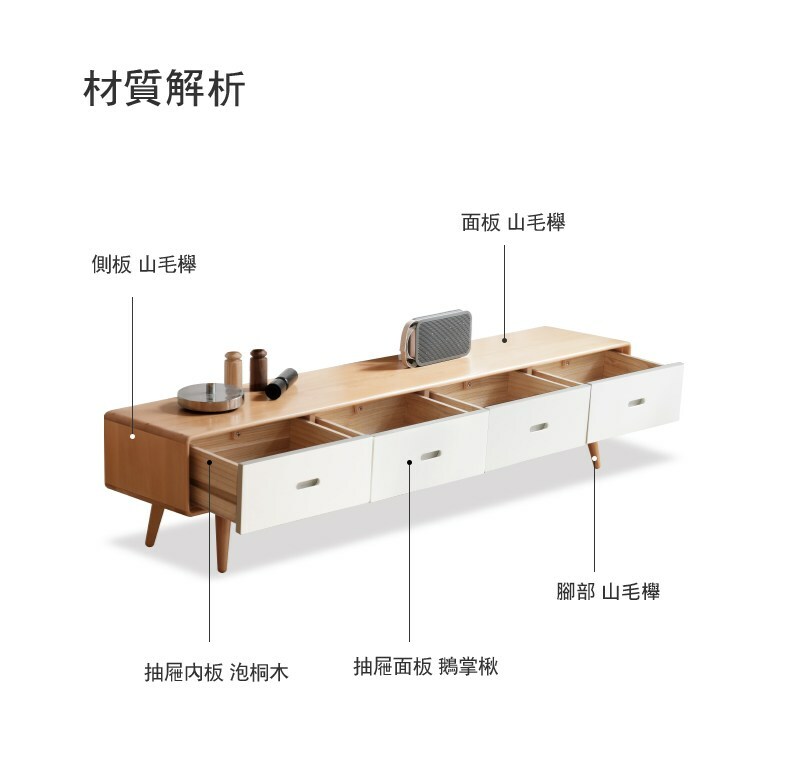 *注意:以下為情境示意圖,實際商品款式為暖白實木四抽電視櫃2M Y56N03