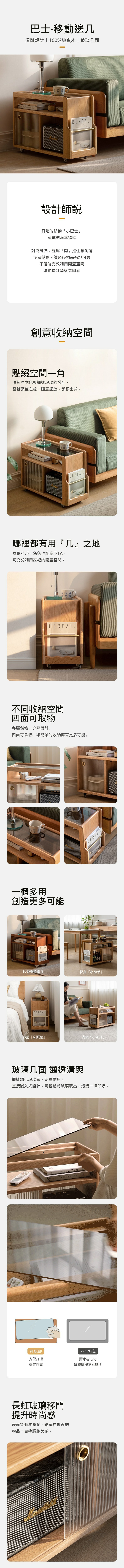*注意:以下為情境示意圖,實際商品款式為巴士黑胡桃木復古玻璃移動邊几 K00J71