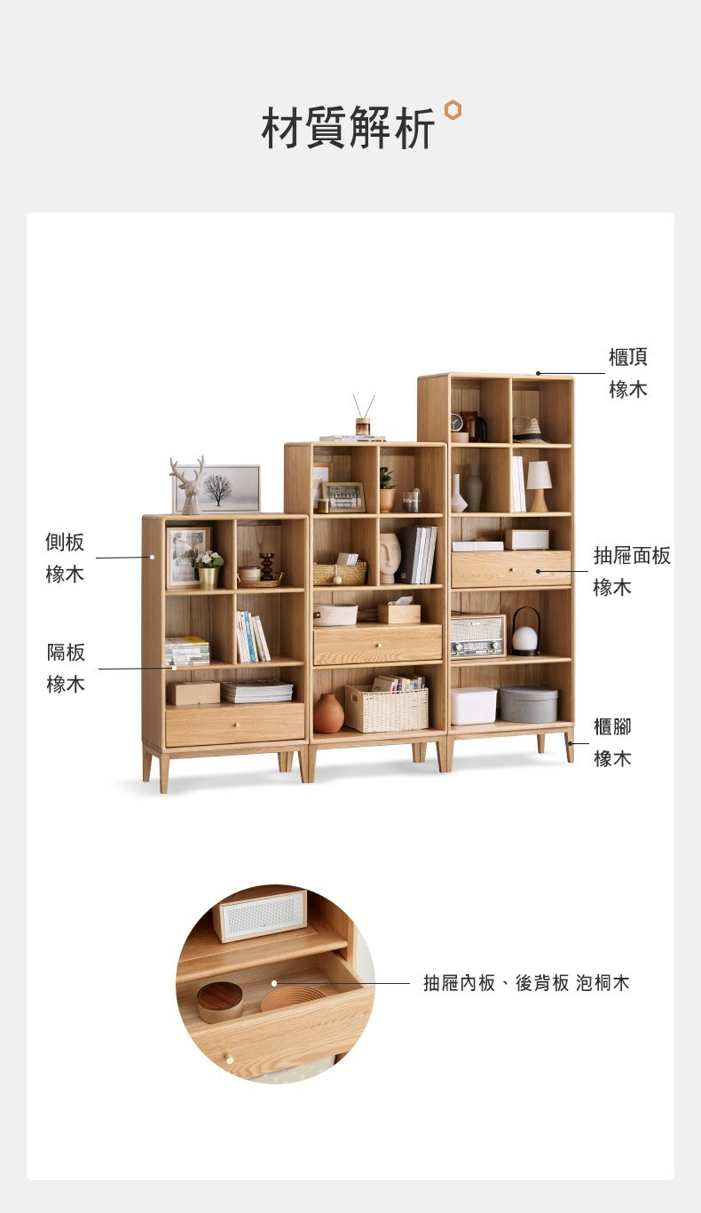 *注意:以下為情境示意圖,實際商品款式為布拉格橡木胡桃色單抽分隔書櫃(中款) H84Y15