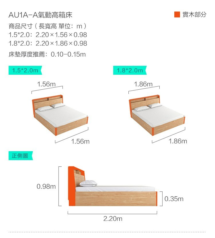 *注意:以下為情境示意圖,實際商品款式為自然清新多功能收納床頭雙人加大180x200掀床架 AU1A