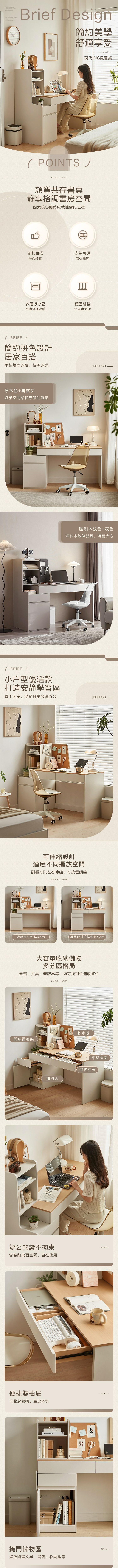 *注意:以下為情境示意圖,實際商品款式為簡約雙色多功能可伸縮書桌 OV1V-原木色